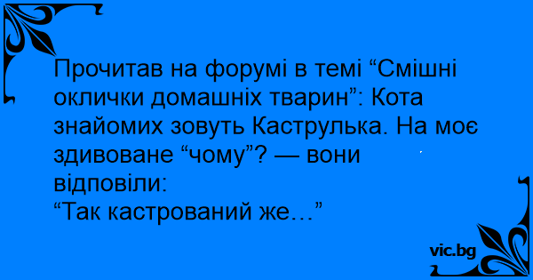 Прочитав на форумі в темі “Смішні оклички домашніх тварин”: Кота знайомих зовуть Каструлька. На моє здивоване “чому”? — вони відповіли: