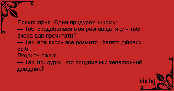 Психлікарня. Один придурок іншому: