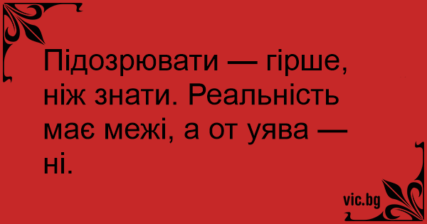 Підозрювати — гірше, ніж знати. Реальність має межі, а от уява — ні.