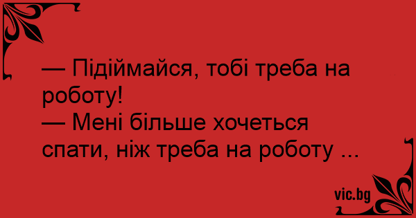 — Мені більше хочеться спати, ніж треба на роботу ...
