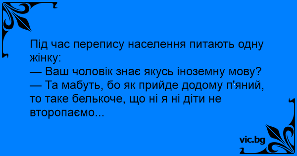 — Та мабуть, бо як прийде додому п'яний, то таке белькоче, що ні я ні діти не второпаємо...