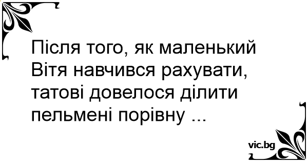 Після того, як маленький Вітя навчився рахувати, татові довелося ділити пельмені порівну ...