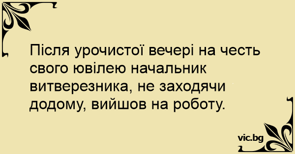 Після урочистої вечері на честь свого ювілею начальник витверезника, не заходячи додому, вийшов на роботу.