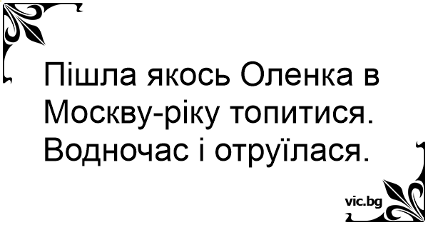 Пішла якось Оленка в Москву-ріку топитися. Водночас і отруїлася.