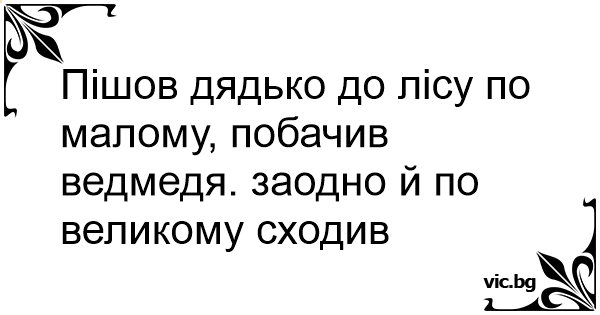 Пішов дядько до лісу по малому, побачив ведмедя. заодно й по великому сходив