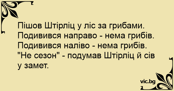 Пішов Штірліц у ліс за грибами.