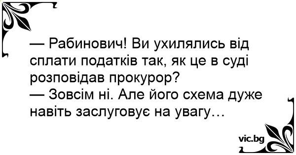 — Рабинович! Ви ухилялись від сплати податків так, як це в суді розповідав прокурор?