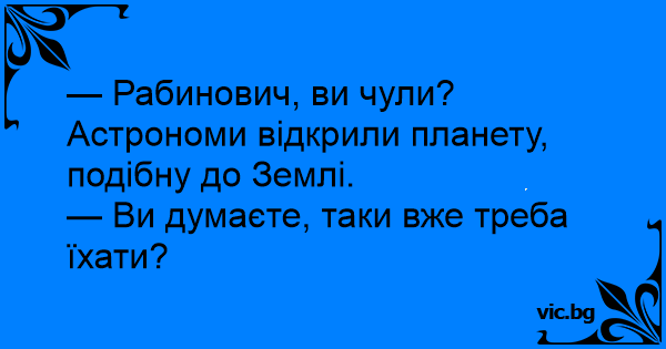 — Рабинович, ви чули? Астрономи відкрили планету, подібну до Землі.