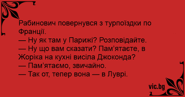 — Ну що вам сказати? Пам’ятаєте, в Жоріка на кухні висіла Джоконда?