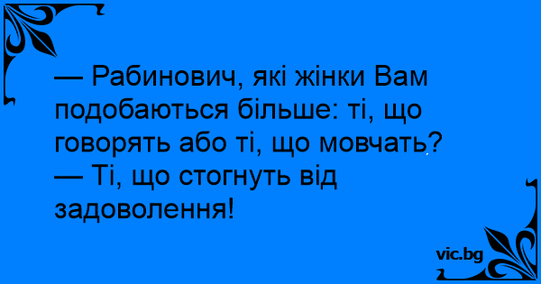— Рабинович, які жінки Вам подобаються більше: ті, що говорять або ті, що мовчать?