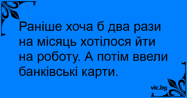 Раніше хоча б два рази на місяць хотілося йти на роботу. А потім ввели банківські карти.