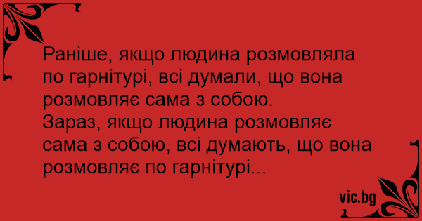 Зараз, якщо людина розмовляє сама з собою, всі думають, що вона розмовляє по гарнітурі...