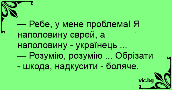 — Ребе, у мене проблема! Я наполовину єврей, а наполовину - українець ...