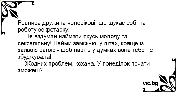 Ревнива дружина чоловікові, що шукає собі на роботу секретарку: