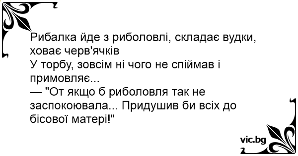 — "От якщо б риболовля так не заспокоювала... Придушив би всіх до бісової матері!"