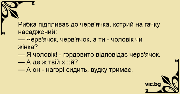 — Черв'ячок, черв'ячок, а ти - чоловік чи жінка?