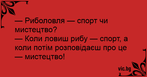 — Коли ловиш рибу — спорт, а коли потім розповідаєш про це — мистецтво!