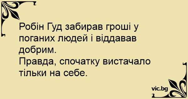 Робін Гуд забирав гроші у поганих людей і віддавав добрим.