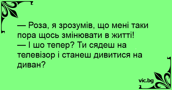 — Роза, я зрозумів, що мені таки пора щось змінювати в житті!
