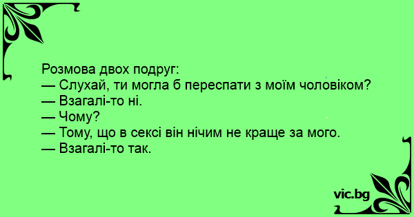 — Слухай, ти могла б переспати з моїм чоловіком?