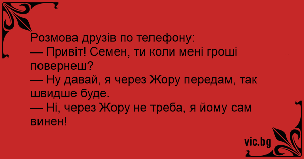 — Привіт! Семен, ти коли мені гроші повернеш?