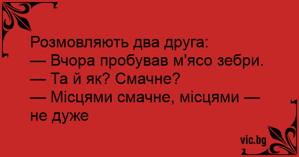 — Вчора пробував м'ясо зебри.
