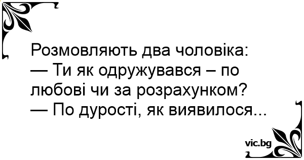— Ти як одружувався – по любові чи за розрахунком?