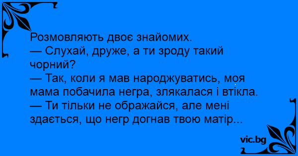 — Ти тільки не ображайся, але мені здається, що нeгp догнав твою матір...