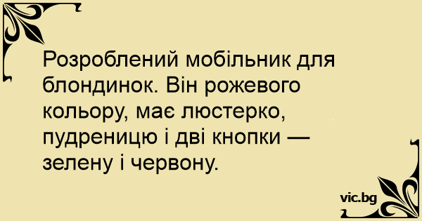 Розроблений мобільник для блондинок. Він рожевого кольору, має люстерко, пудреницю і дві кнопки — зелену і червону.
