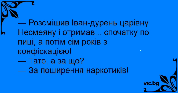 — Розсмішив Іван-дурень царівну Несмеяну і отримав... спочатку по пиці, а потім сім років з конфіскацією!