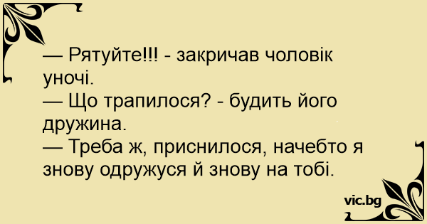 — Треба ж, приснилося, начебто я знову одружуся й знову на тобі.