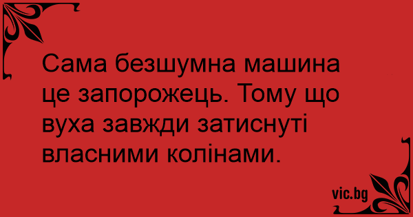 Сама безшумна машина це запорожець. Тому що вуха завжди затиснуті власними колінами.