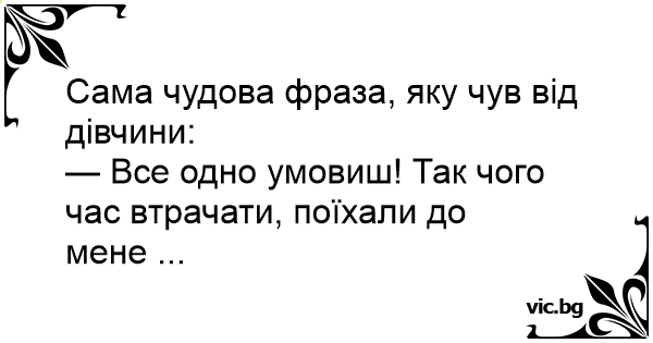 — Все одно умовиш! Так чого час втрачати, поїхали до мене ...