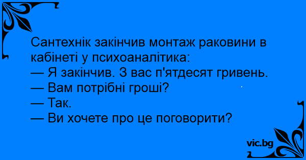 Сантехнік закінчив монтаж раковини в кабінеті у психоаналітика: