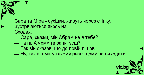 Сара та Міра - сусідки, живуть через стінку. Зустрічаються якось на