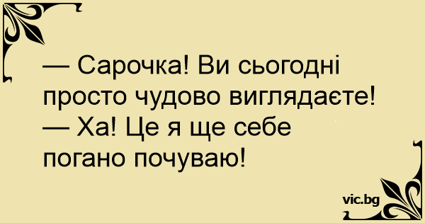 — Сарочка! Ви сьогодні просто чудово виглядаєте!