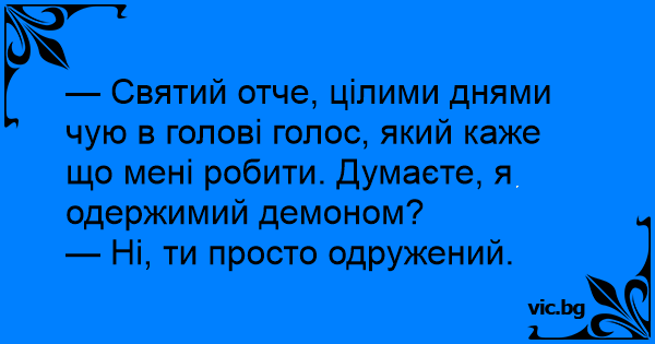— Святий отче, цілими днями чую в голові голос, який каже що мені робити. Думаєте, я одержимий демоном?