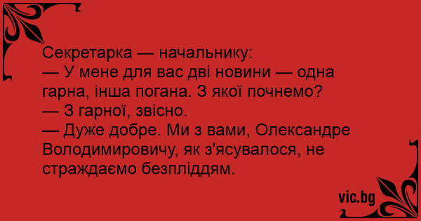 — У мене для вас дві новини — одна гарна, інша погана. З якої почнемо?