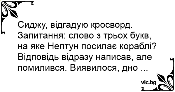 Сиджу, відгадую кросворд. Запитання: слово з трьох букв, на яке Нептун посилає кораблі? Відповідь відразу написав, але помилився. Виявилося, дно ...