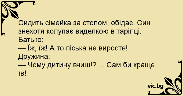 — Чому дитину вчиш!? ... Сам би краще їв!