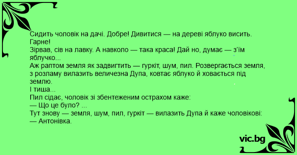 Сидить чоловік на дачі. Добре! Дивитися — на дереві яблуко висить. Гарне!