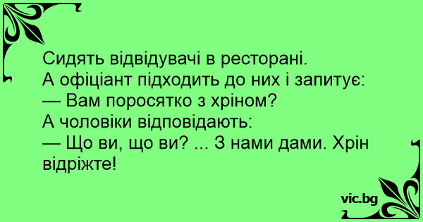 — Що ви, що ви? ... З нами дами. Хрін відріжте!