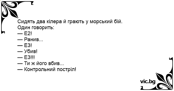 Сидять два кілера й грають у морський бій.