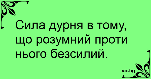 Сила дурня в тому, що розумний проти нього безсилий.