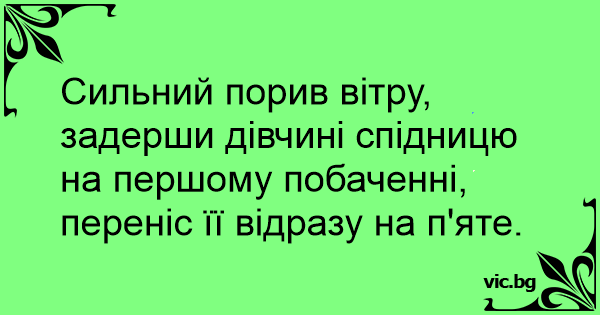 Сильний порив вітру, задерши дівчині спідницю на першому побаченні, переніс її відразу на п'яте.