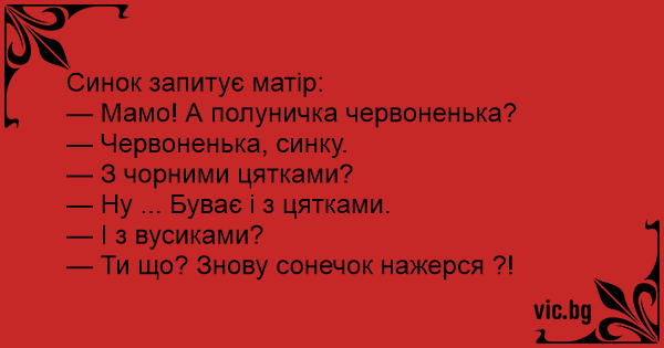 — Мамо! А полуничка червоненька?