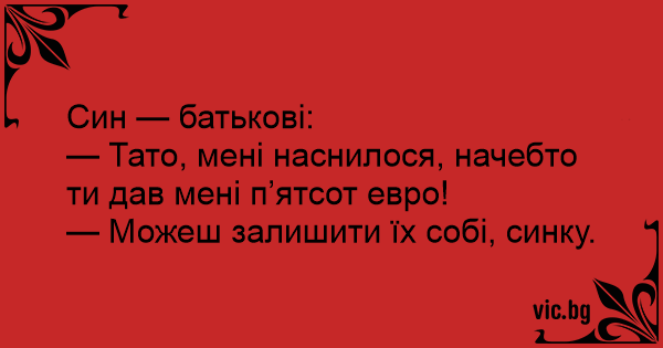 — Тато, мені наснилося, начебто ти дав мені п’ятсот евро!