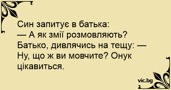 Батько, дивлячись на тещу: — Ну, що ж ви мовчите? Онук цікавиться.
