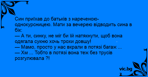 — А ти, синку, не міг би їй натякнути, щоб вона одягала сукню хочь трохи довшу!
