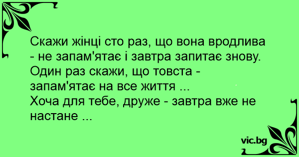 Скажи жінці сто раз, що вона вродлива - не запам'ятає і завтра запитає знову.
